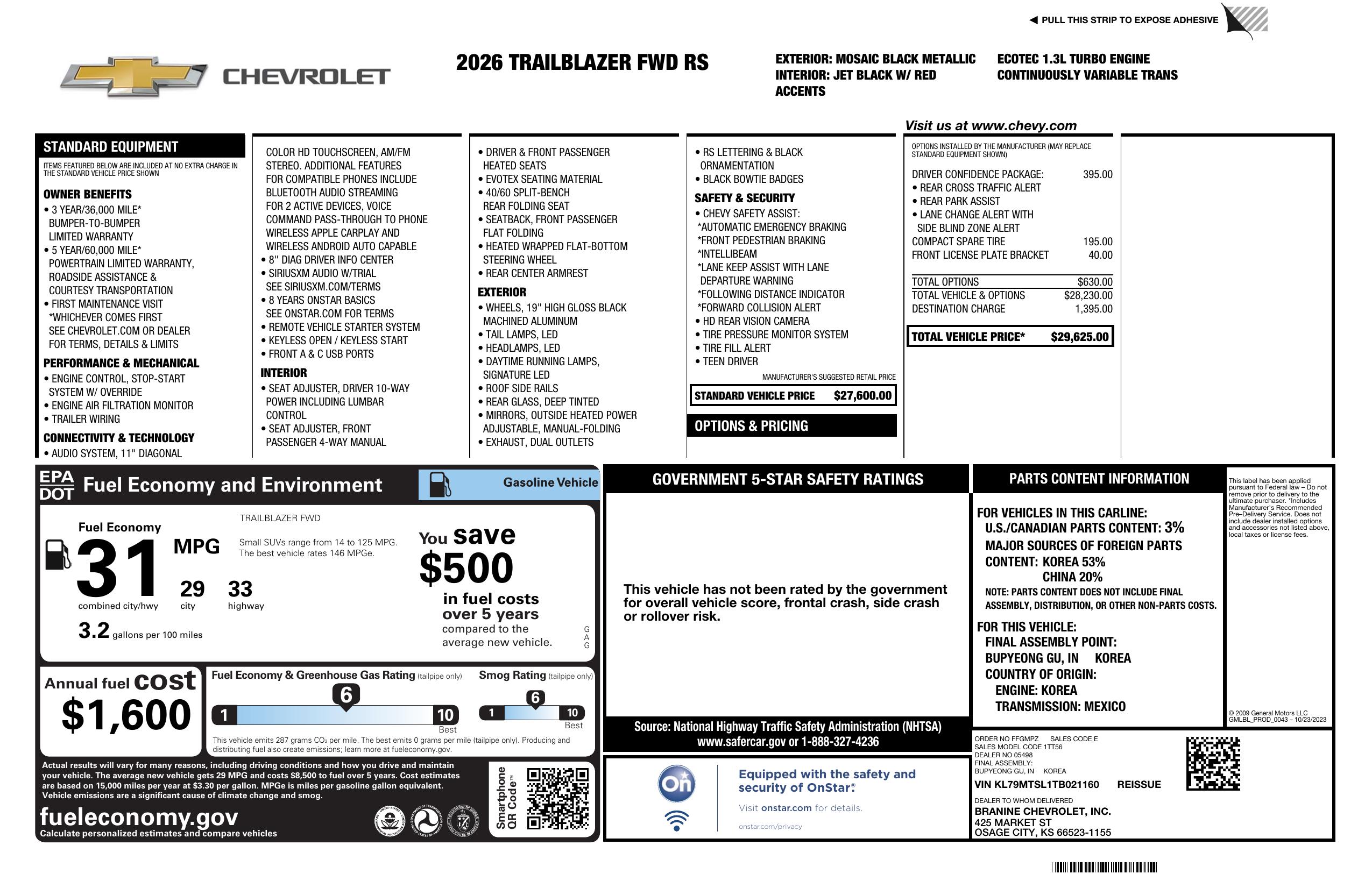 We explain our dealer discounts and applied Manufacturer Rebates for EVERY New and Pre Owned vehicle. No guessing whether or not you qualify! No additional ADDS or CRAZY Fees! The only fees you pay is our $299 Documentation Fee and the Sales Tax. The Price You See is the Price Your Pay! - Every Car - Every Time! Only at Branine Chevrolet.