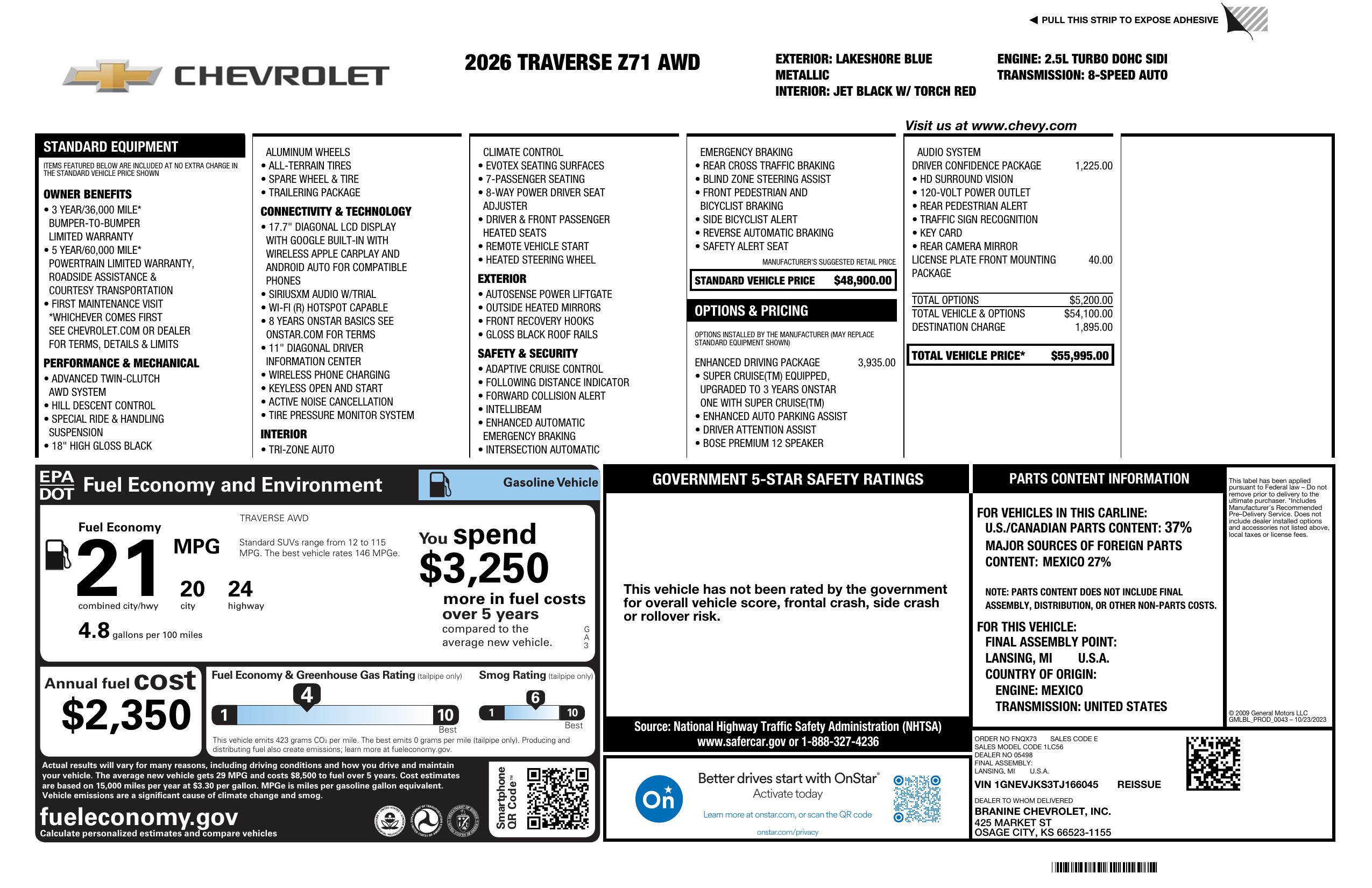 We explain our dealer discounts and applied Manufacturer Rebates for EVERY New and Pre Owned vehicle. No guessing whether or not you qualify! No additional ADDS or CRAZY Fees! The only fees you pay is our $299 Documentation Fee and the Sales Tax. The Price You See is the Price Your Pay! - Every Car - Every Time! Only at Branine Chevrolet.