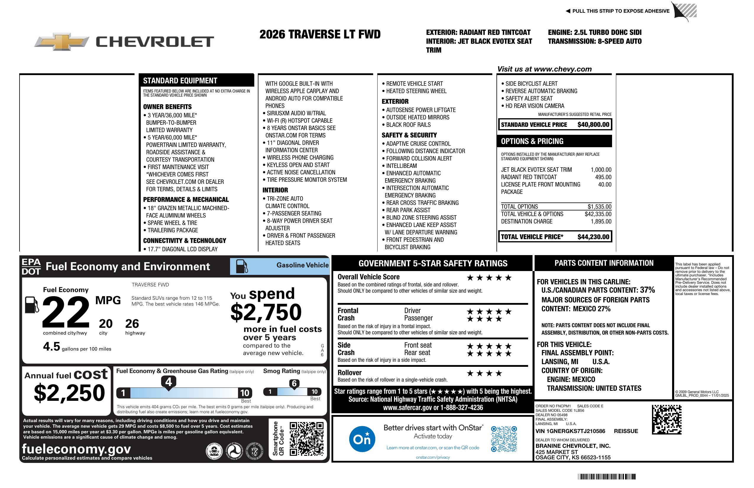We explain our dealer discounts and applied Manufacturer Rebates for EVERY New and Pre Owned vehicle. No guessing whether or not you qualify! No additional ADDS or CRAZY Fees! The only fees you pay is our $299 Documentation Fee and the Sales Tax. The Price You See is the Price Your Pay! - Every Car - Every Time! Only at Branine Chevrolet.