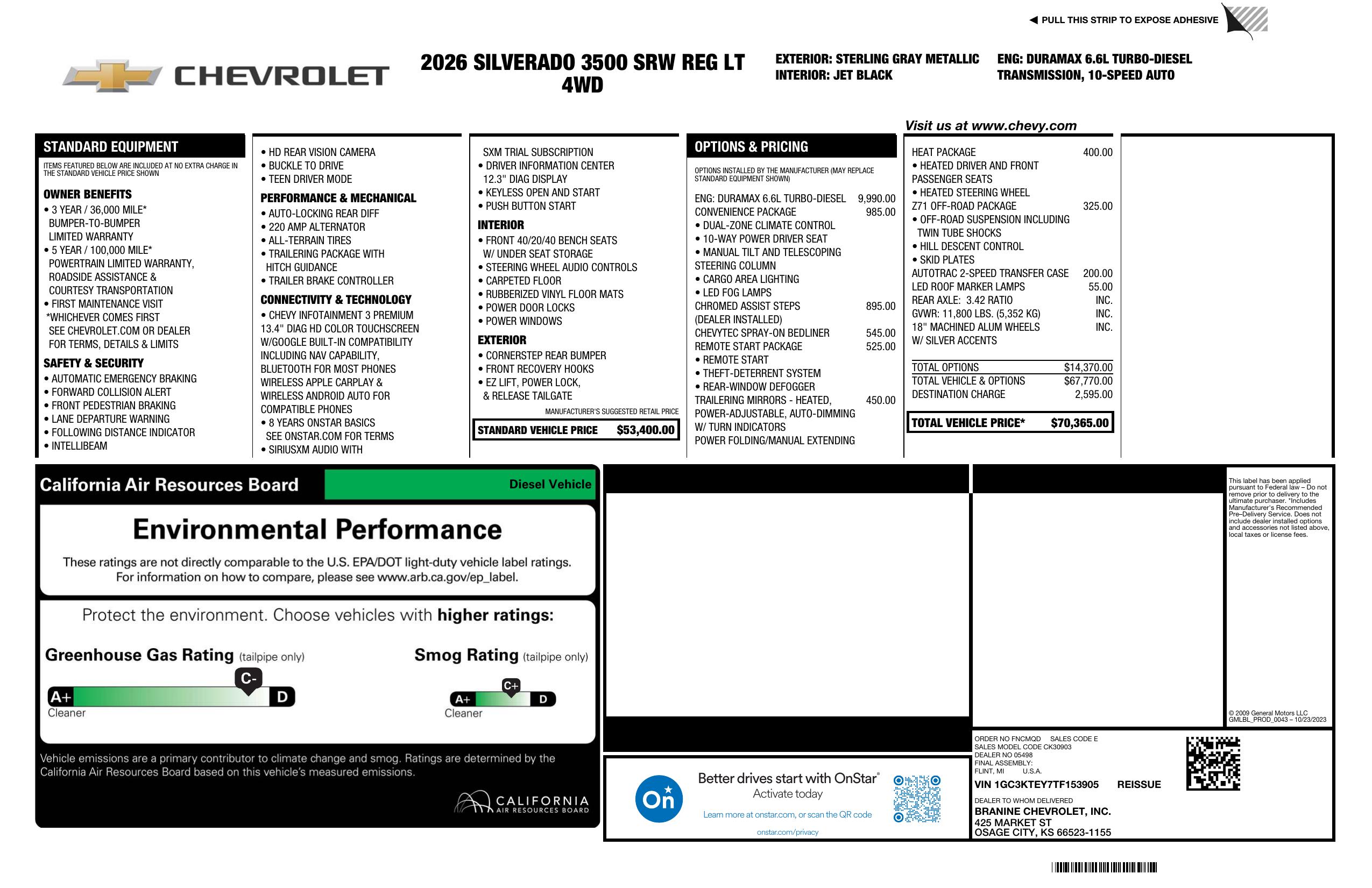 DURAMAX 6.6L TURBO-DIESEL V8, B20-DIESEL COMPATIBLE